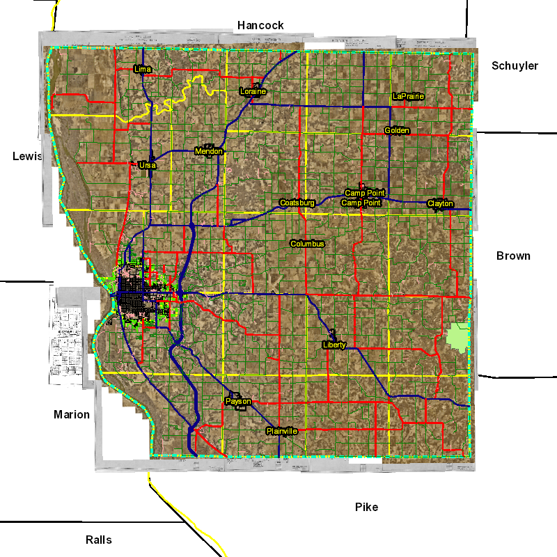 A GIS web application containing the GIS data for Adams County, Illinois.